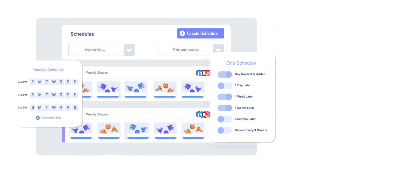 Post natively to your social media accounts with a seamless click schedule interface, or set up evergreen campaigns to automatically repost content.