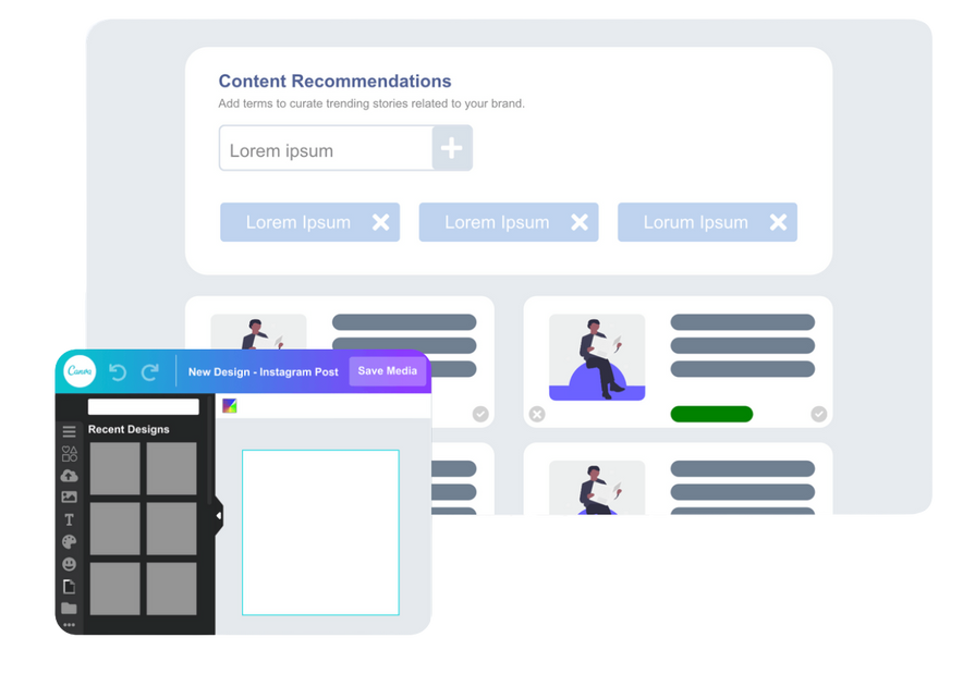 Quickly create social media content with automatic and bulk importing, content recommendations, access to free stock images, and Canva integration - all from within the app!